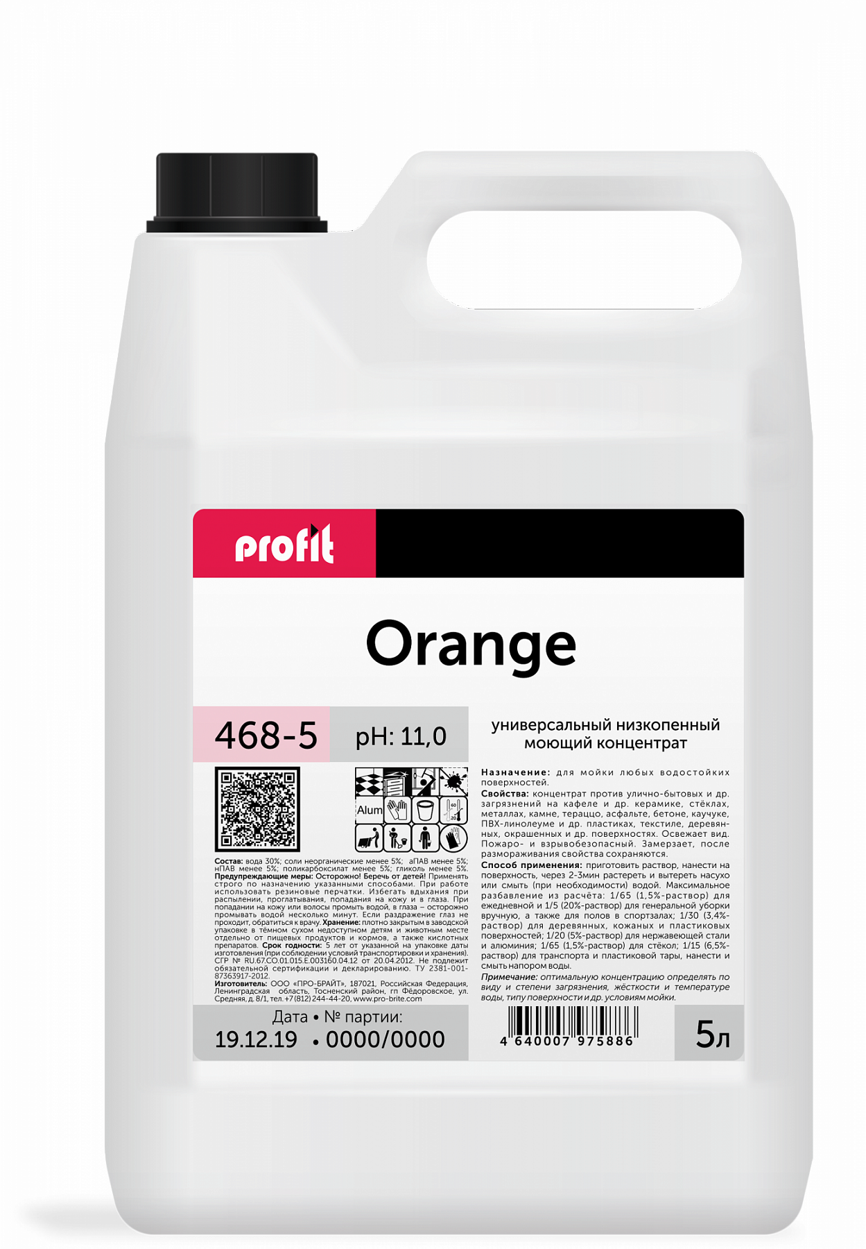 Pro-Brite: PROFIT ORANGE 5л/4шт Универсальный низкопенный моющий концентрат